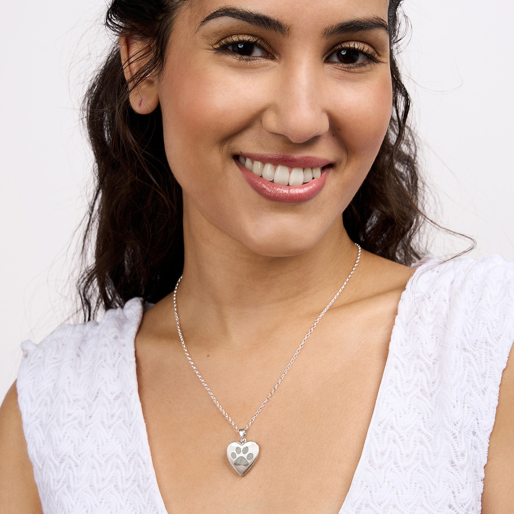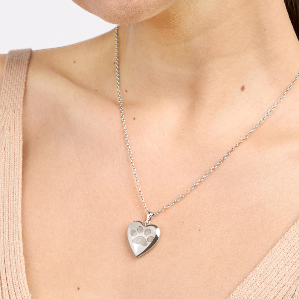 What is on the front of the locket? with Paw Print Design