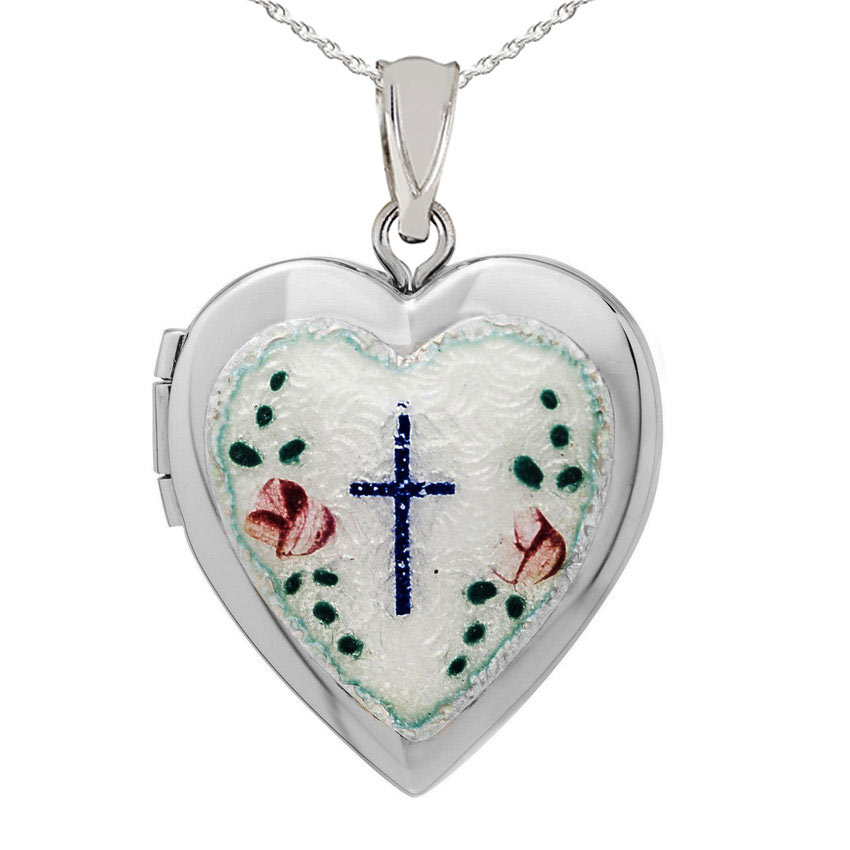 Enameled Cross Heart Photo Locket