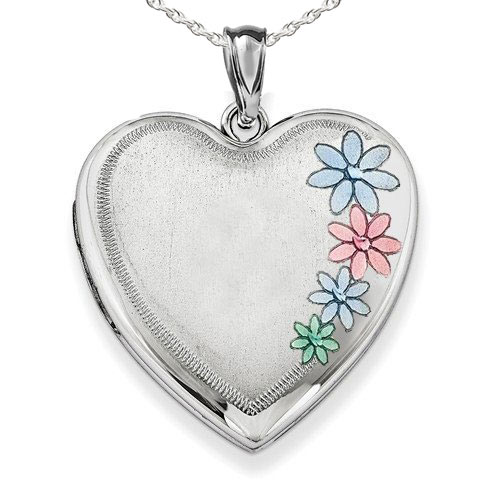 Enameled Flower Heart Photo Locket