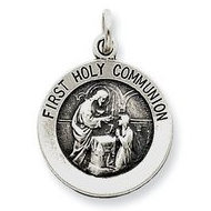 Sterling Silver First Holy Communion Antiqued Pendant Charm