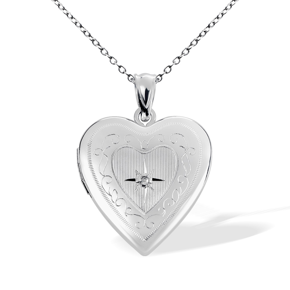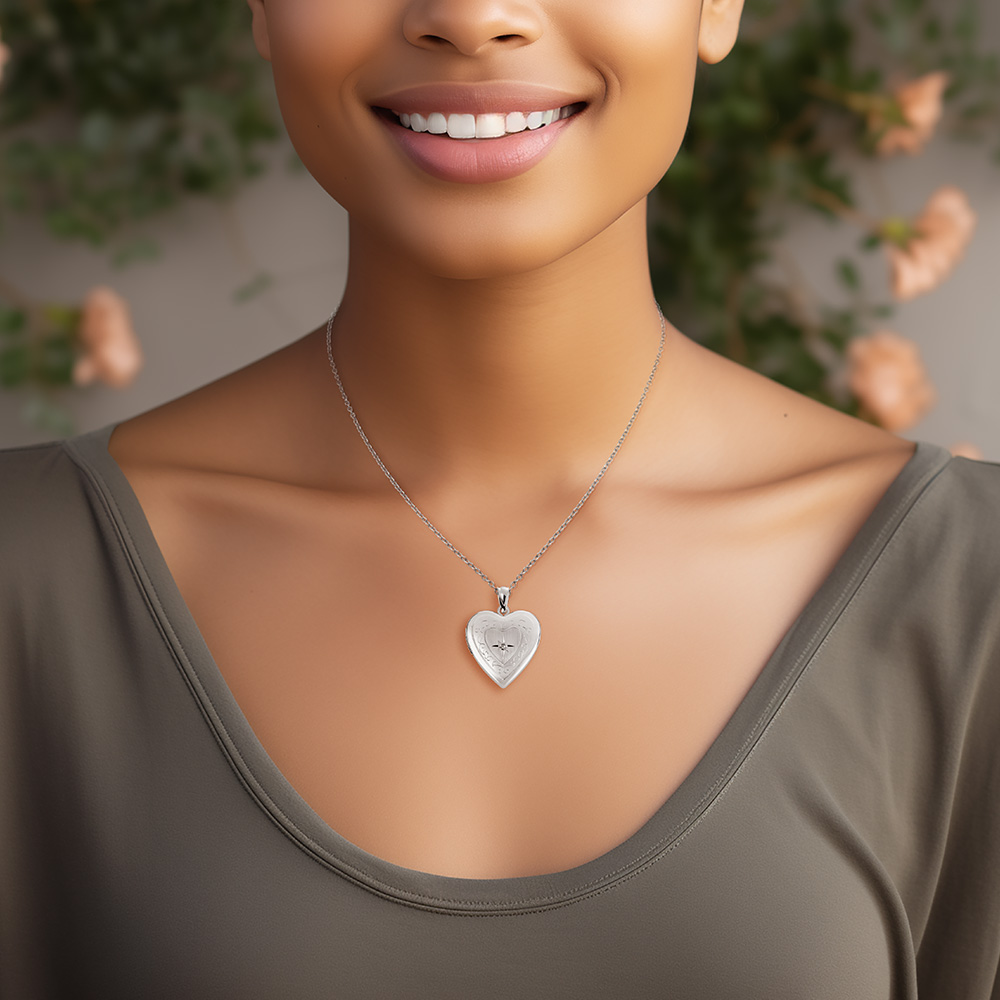 Elevate your style with our Sterling Silver Floral Design Heart Locket adorned with sparkling Cubic Zirconia. This intricately crafted piece combines elegance and charm, perfect for keeping cherished memories close. A symbol of love and beauty, it's an exquisite addition to any jewelry collection.