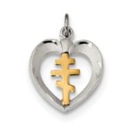 Sterling Silver Gold-plated Polished Satin and D/C Cross Heart Pendant