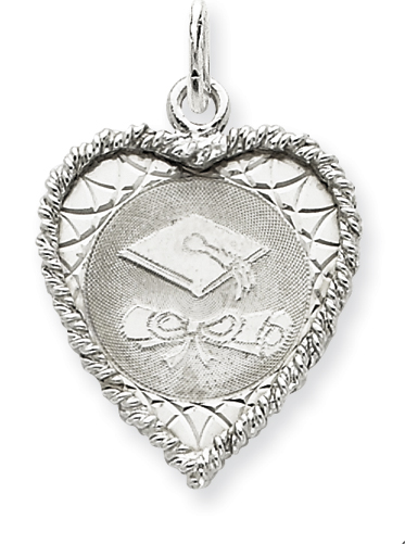 Sterling Silver Graduation Cap & Diploma Disc Charm