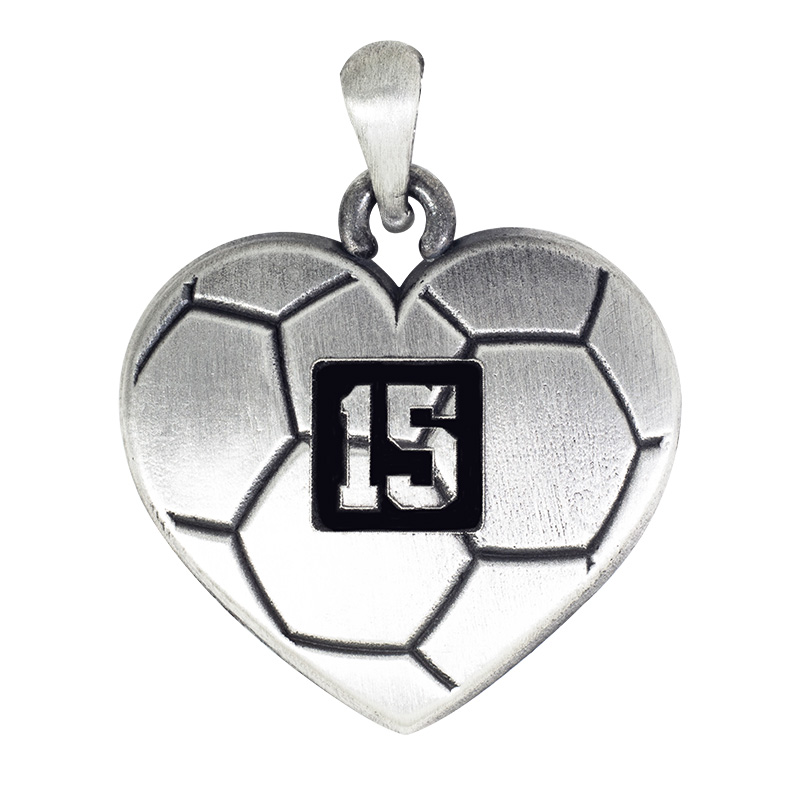 Sterling Silver Heart Shaped Soccer Pendant w/ Number & Chain