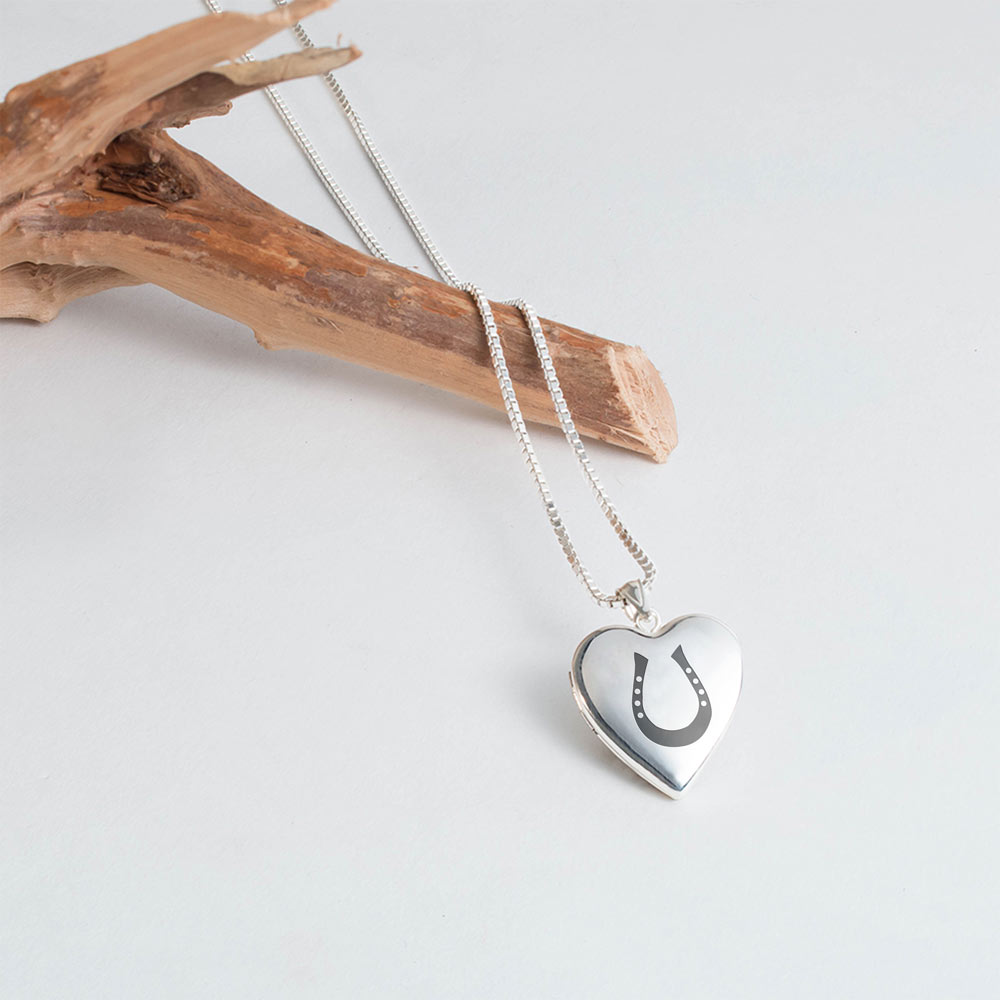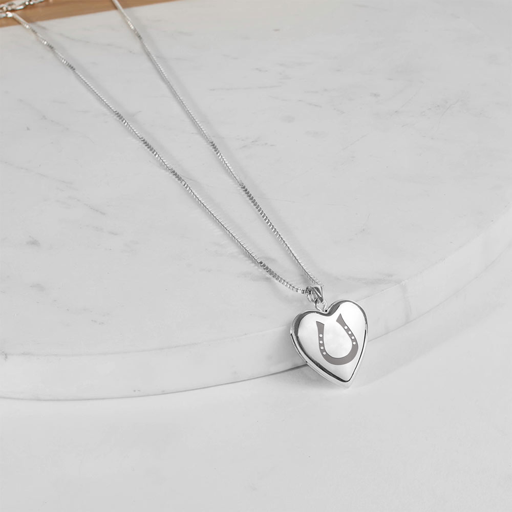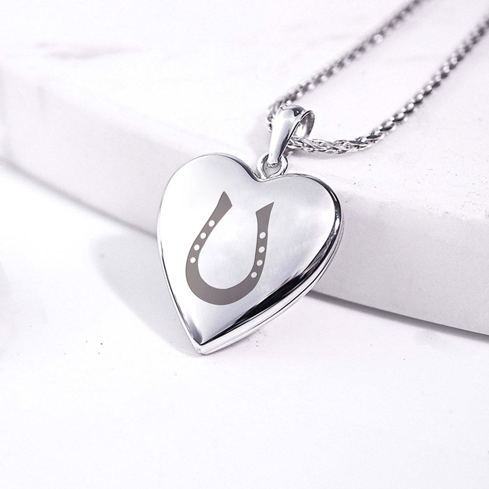 This photo locket is perfect for any horse jewelry lover, a lasered horseshoe on the front truly brings out a sign of good luck as well.