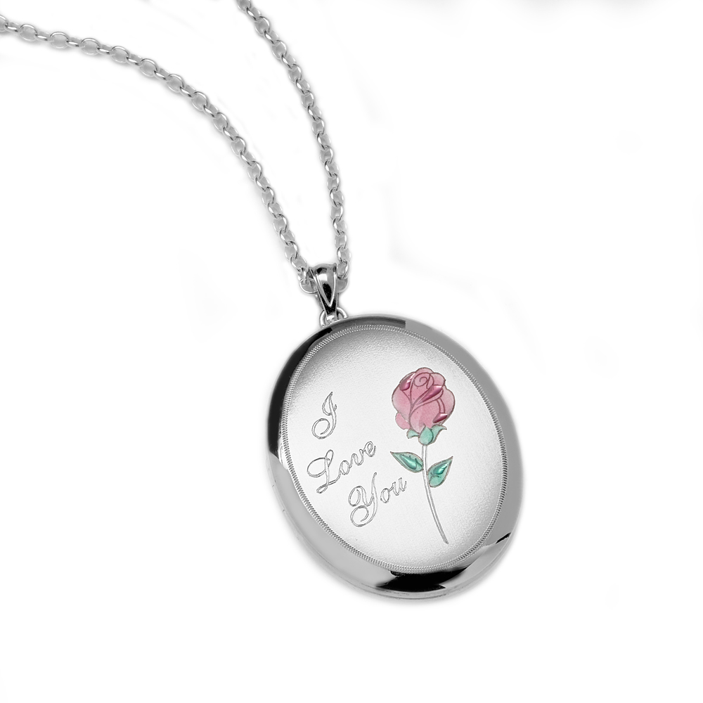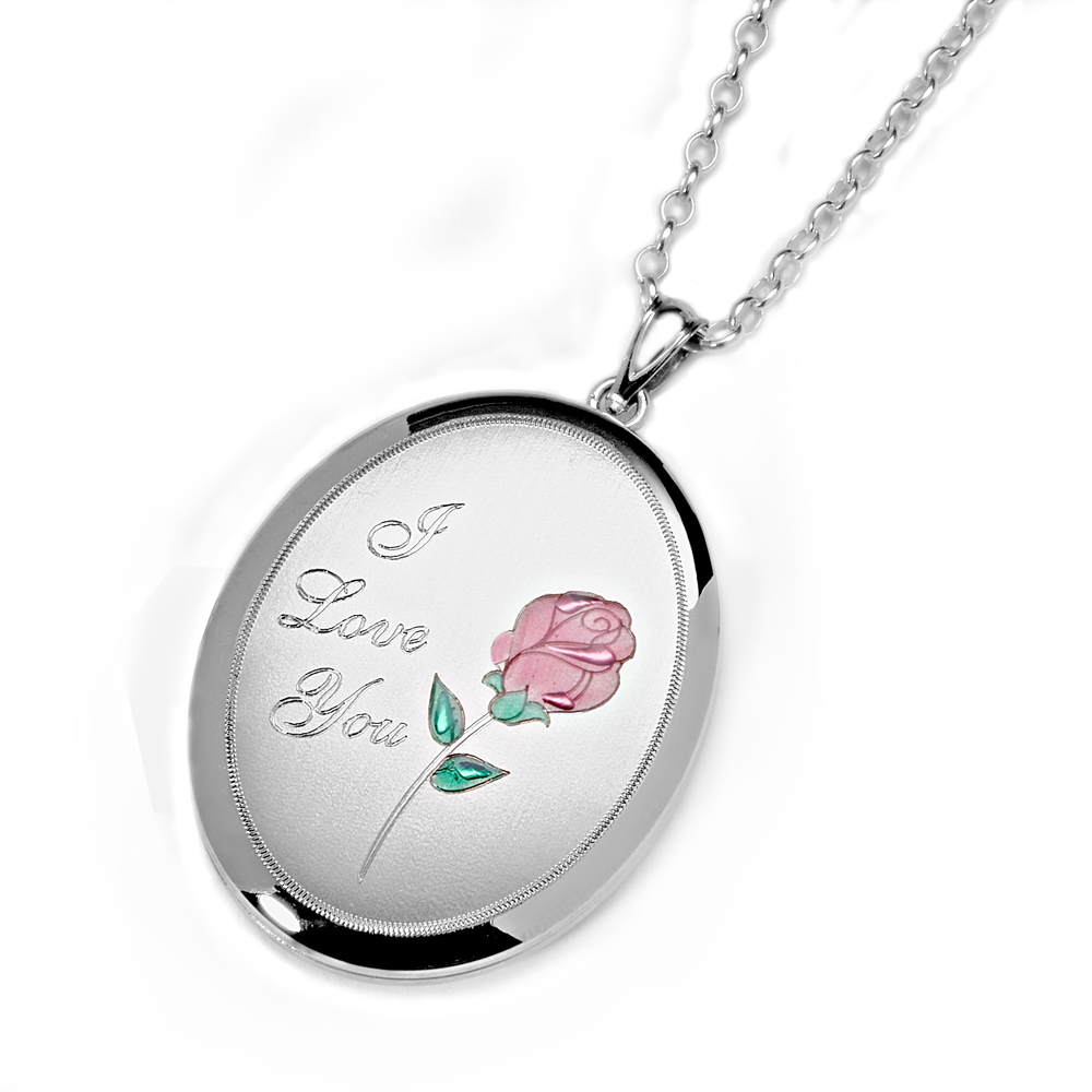 I Love You -w/ Enamel Flower Oval Locket