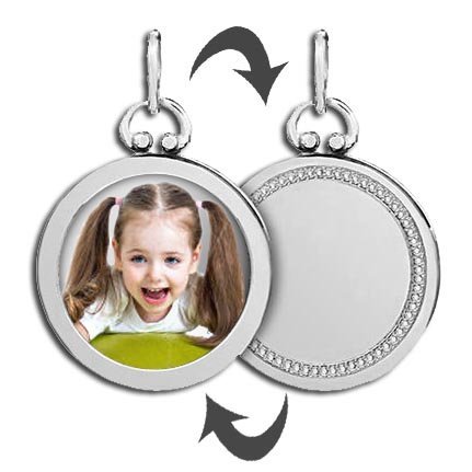 Your photo in full color permanently lasered onto your charm. This process being the most detailed. A protective jewelry enamel is added to every "color laser" pendant to ensure that every day your charm will look as beautiful as the day you took it out of the box.