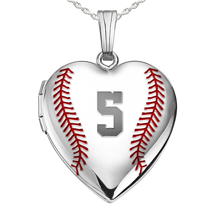 Personalized Baseball Stitch Heart Photo Locket