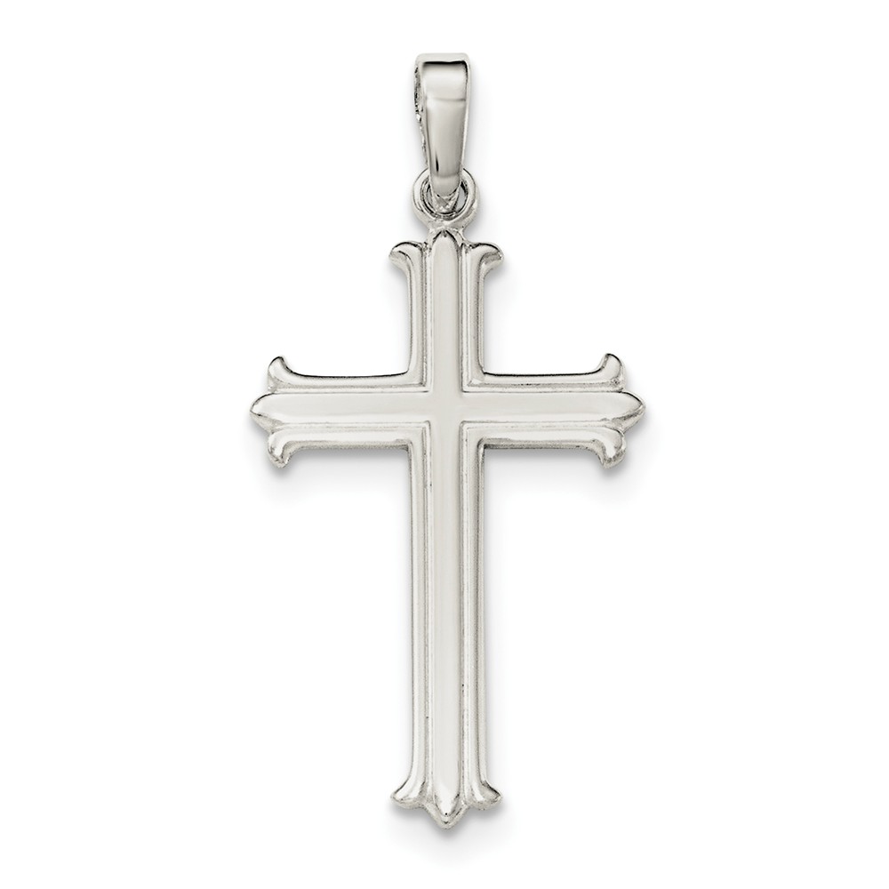 Sterling Silver Polished Fleur De Lis Cross Pendant