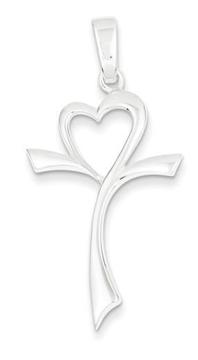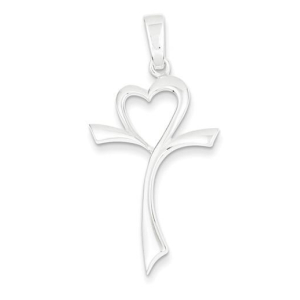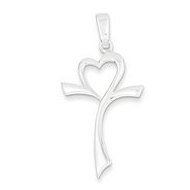 Sterling Silver Polished Heart Cross