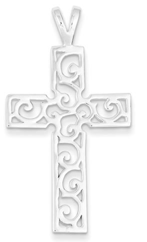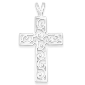 Sterling Silver Polished Swirl Cross Pendant