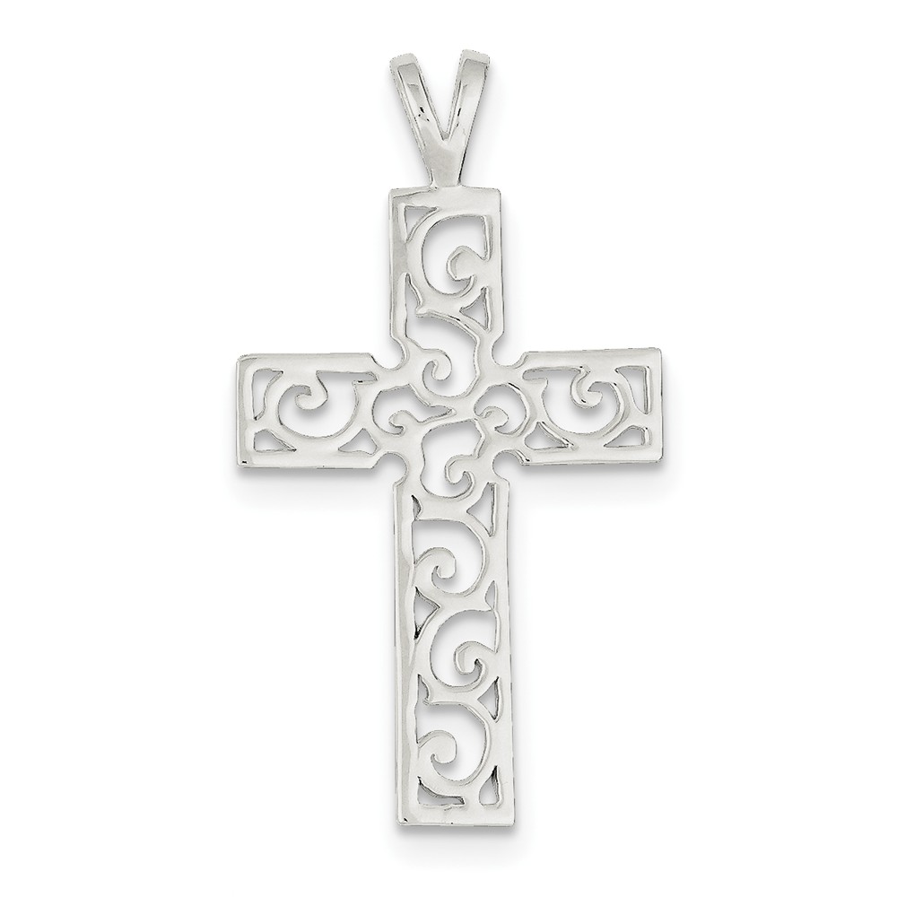 Sterling Silver Polished Swirl Cross Pendant