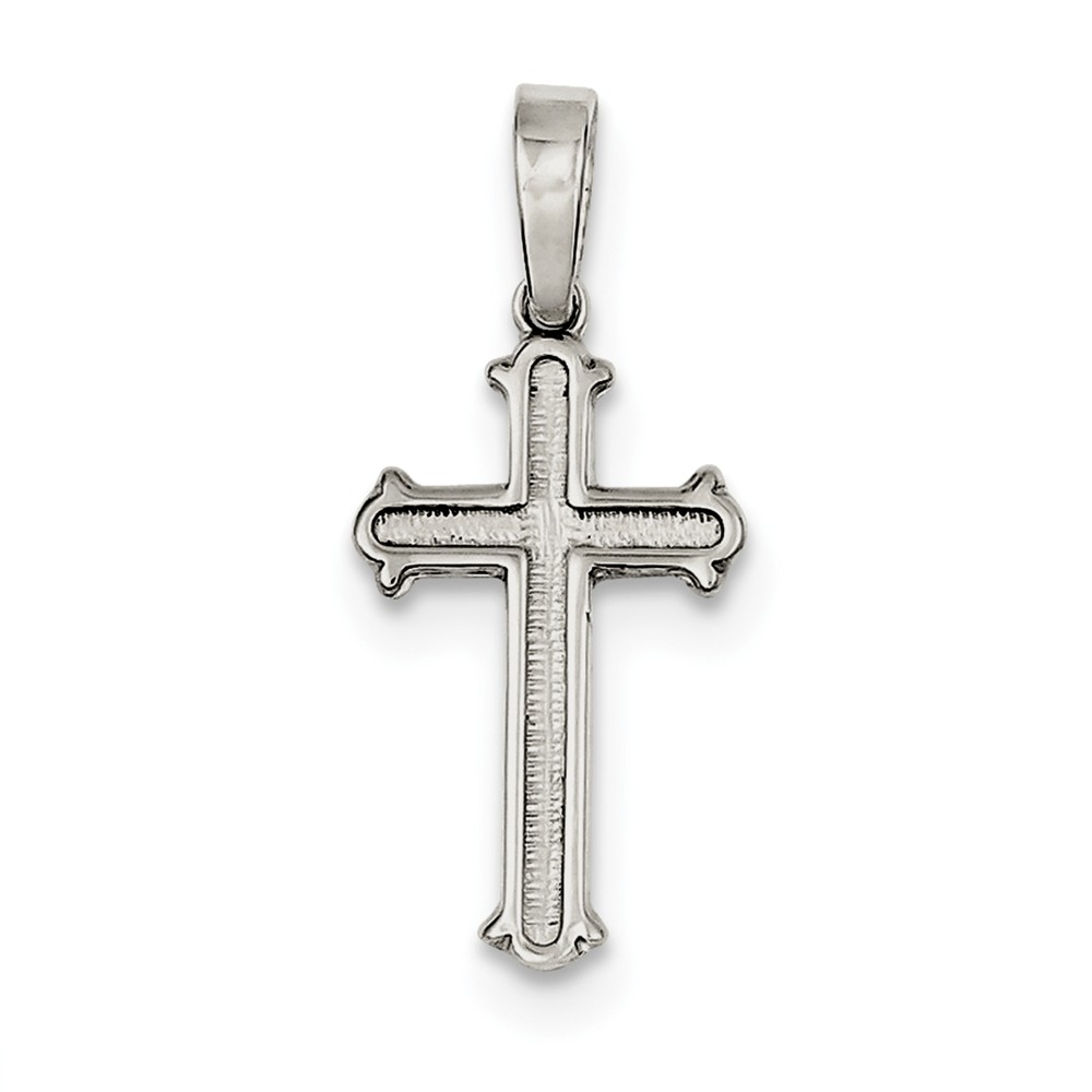 Sterling Silver Polished and Texture Center Finish Cross Pendant
