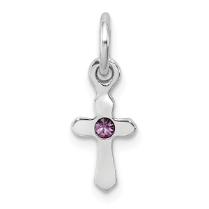 Sterling Silver RH Plated Child\'s Preciosca Crystal June Cross Pendant