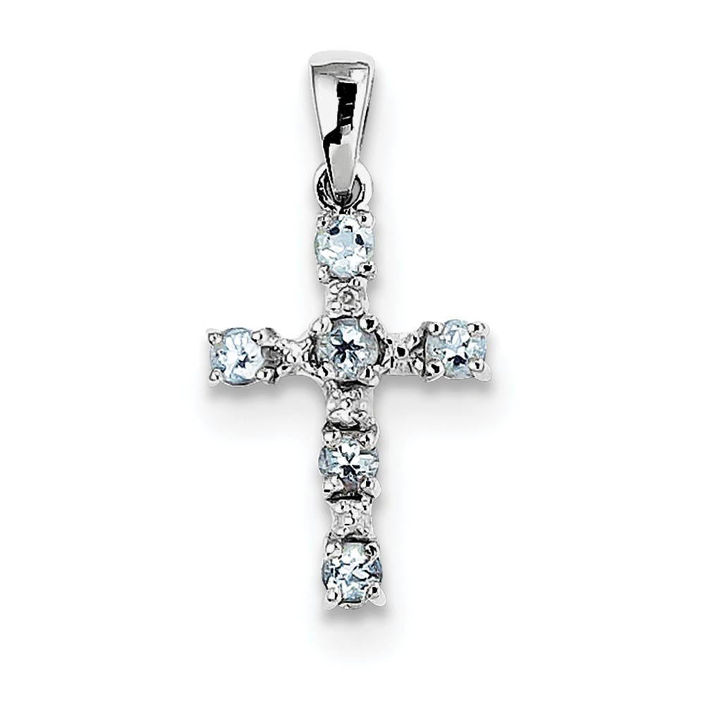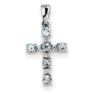 Sterling Silver Rhodium Aqua & Diamond Cross Pendant