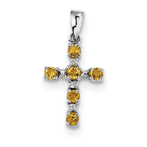 Sterling Silver Rhodium Citrine & Diamond Cross Pendant