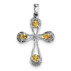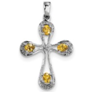 Sterling Silver Rhodium Citrine & Diamond Cross Pendant