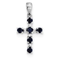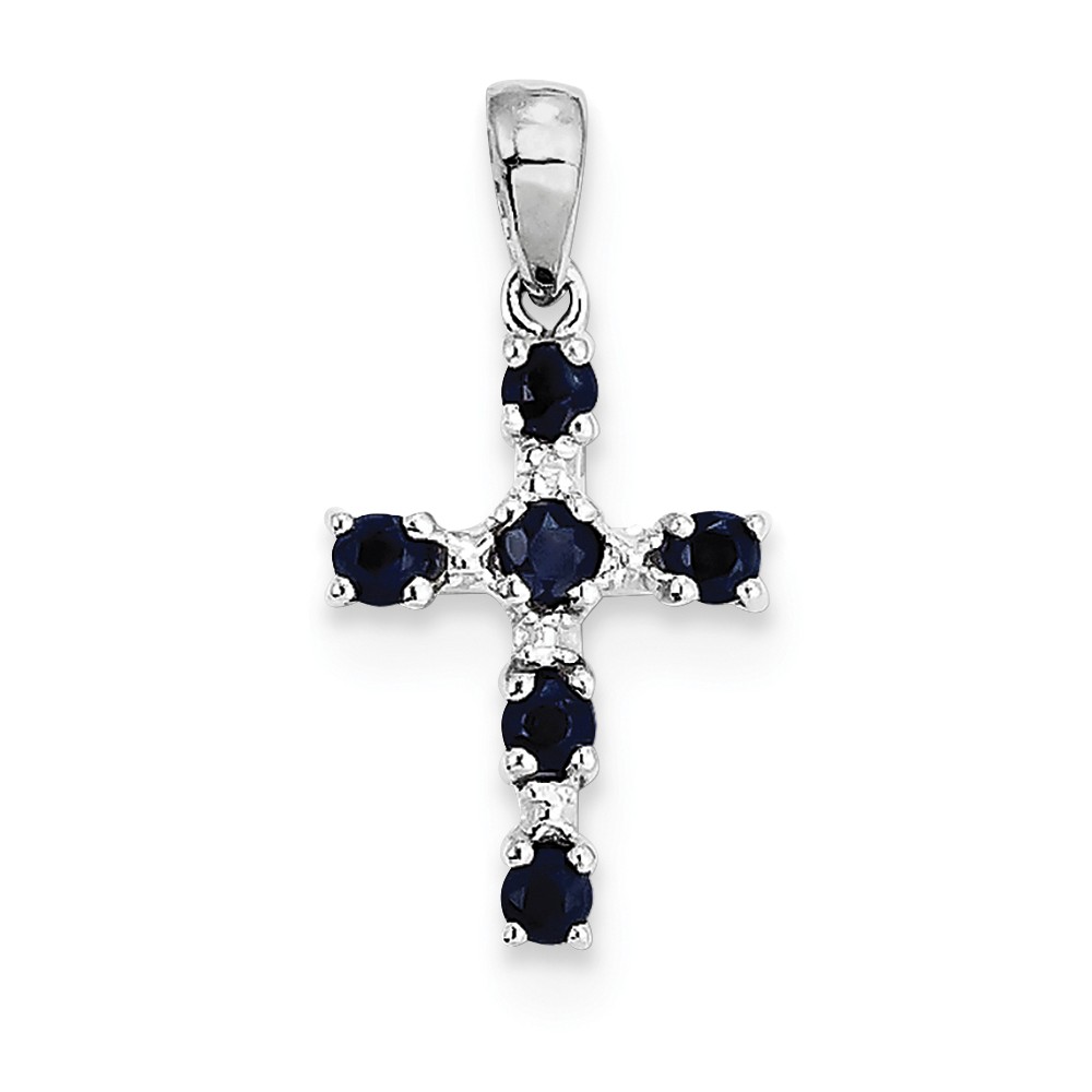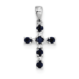 Sterling Silver Rhodium Dark Sapphire & Diamond Cross Pendant