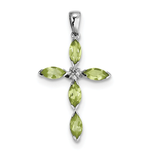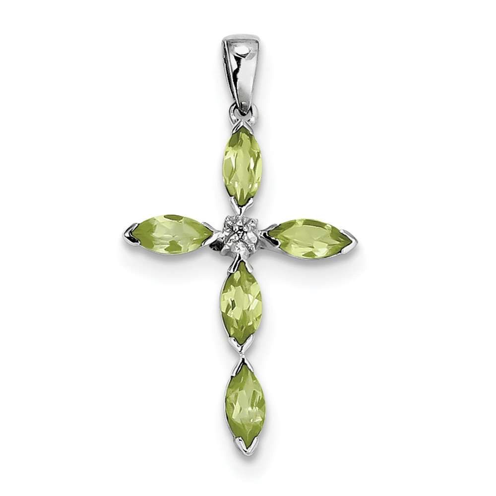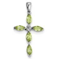 Sterling Silver Rhodium Peridot & Diamond Cross Pendant