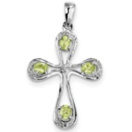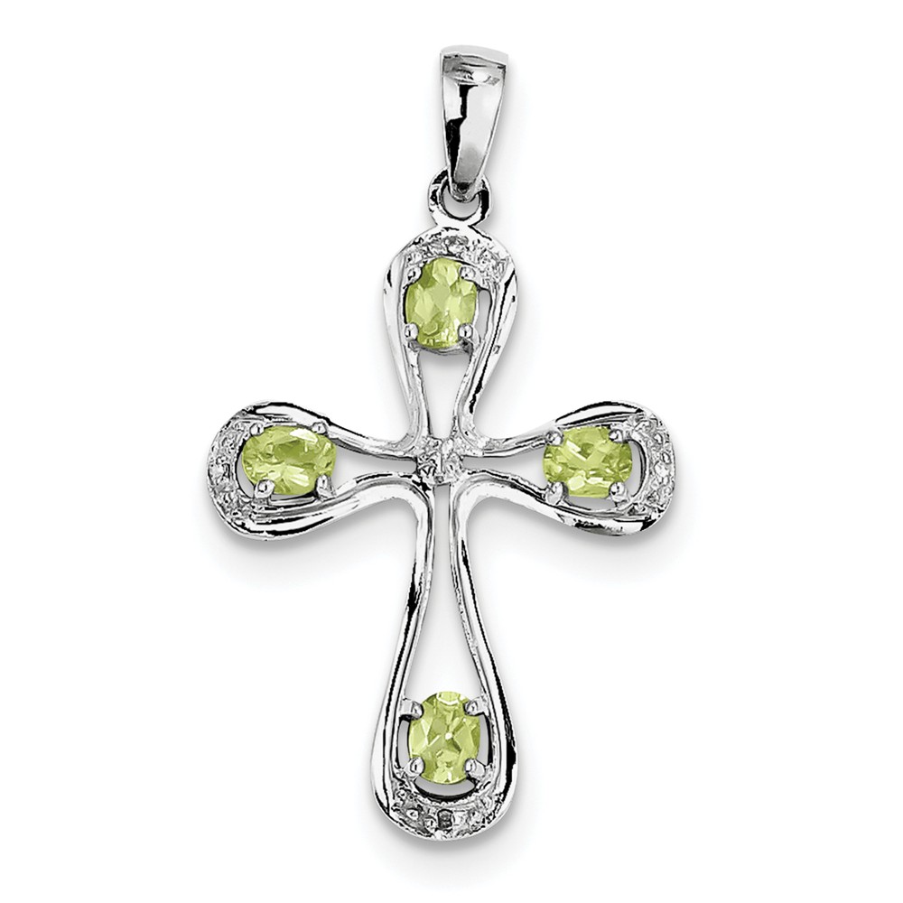 Sterling Silver Rhodium Peridot & Diamond Cross Pendant