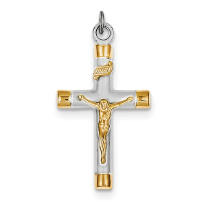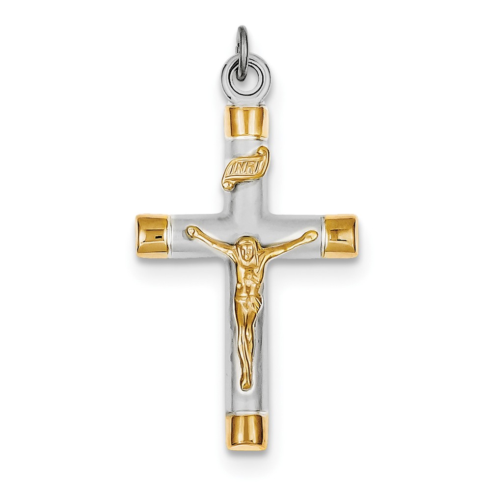 Sterling Silver Rhodium-plated & 18k Gold-plated Crucifix Pendant