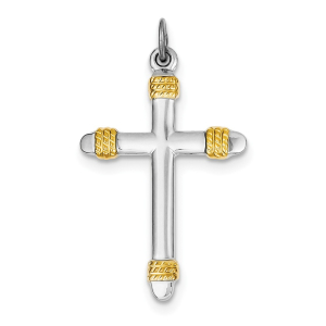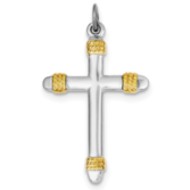 Sterling Silver Rhodium-plated & 18k Gold-plated Rope Cross Pendant