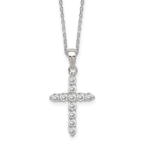 Sterling Silver Rhodium Plated CZ Cross Pendant