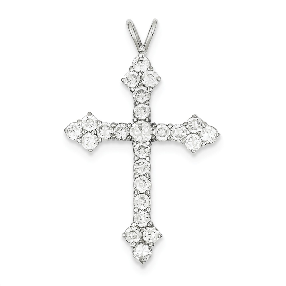 Sterling Silver Rhodium-plated CZ Cross Pendant