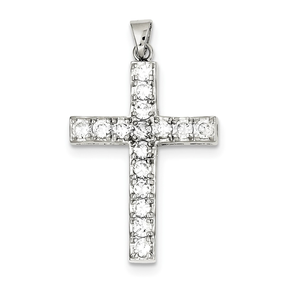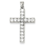 Sterling Silver Rhodium-plated CZ Latin Cross Pendant