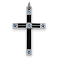 Sterling Silver Rhodium-plated Enameled & Blue CZ Cross Pendant