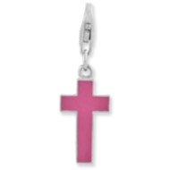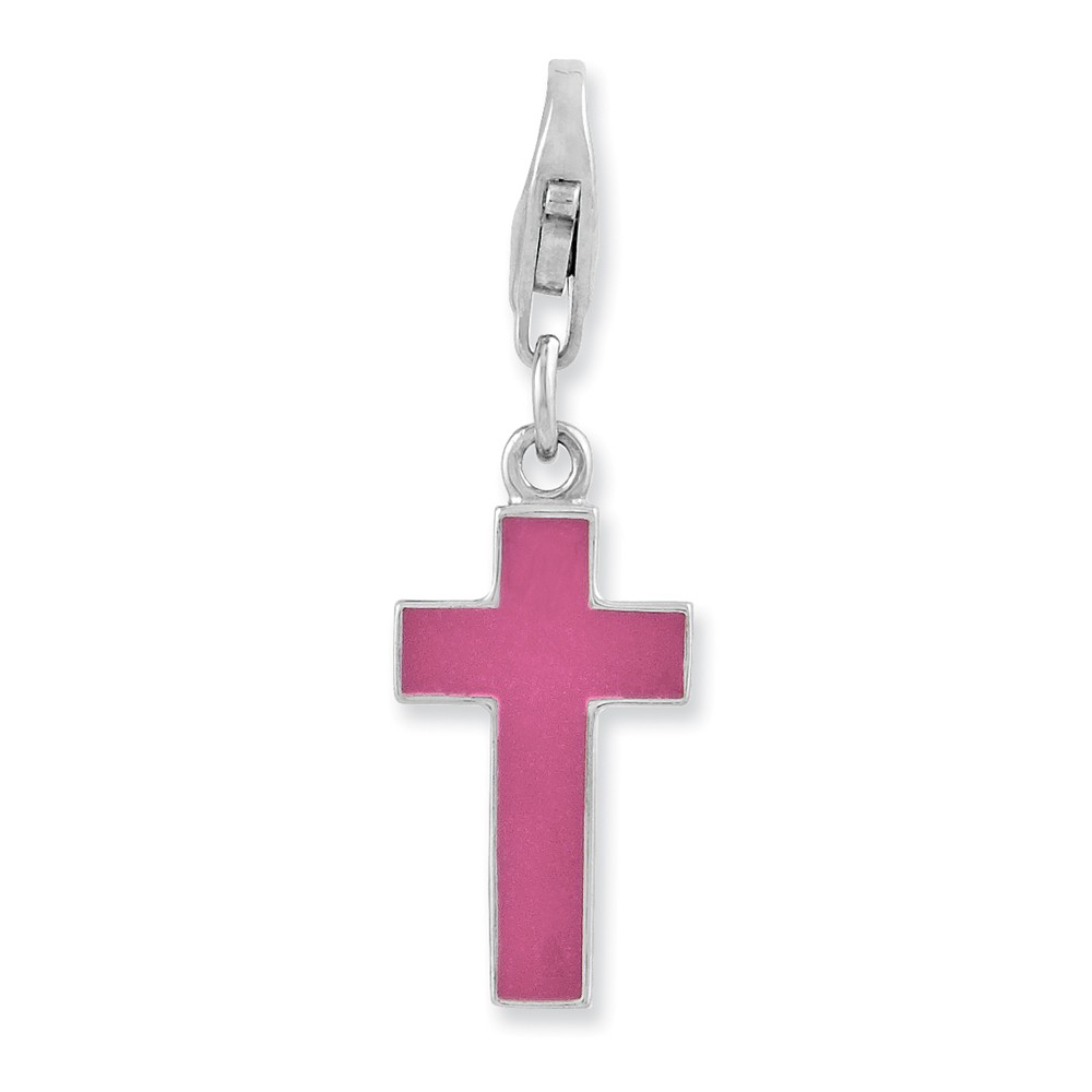 Sterling Silver Rhodium plated Enameled Cross w/Lobster Clasp Charm