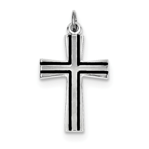 Sterling Silver Rhodium-plated Enameled Latin Cross Charm