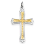 Sterling Silver Rhodium-plated & Gold-plated Cross Pendant