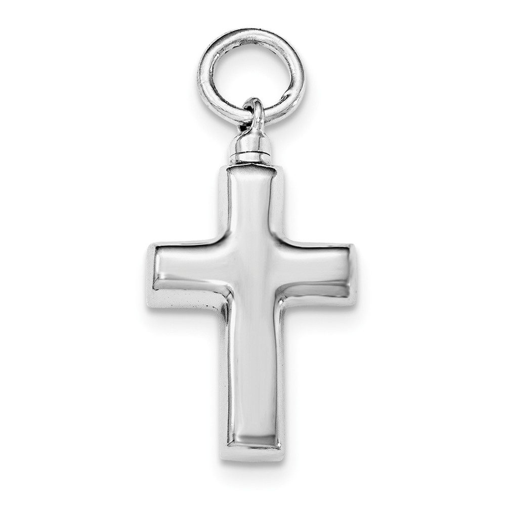 Sterling Silver Rhodium-plated Polished Cross Ash Holder Pendant