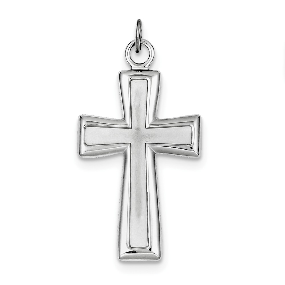 Sterling Silver Rhodium-plated Polished and Satin Cross Pendant