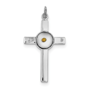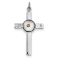 Sterling Silver Rhodium-plated Polshd & Epxy Cross w/Mustard Seed Pendant