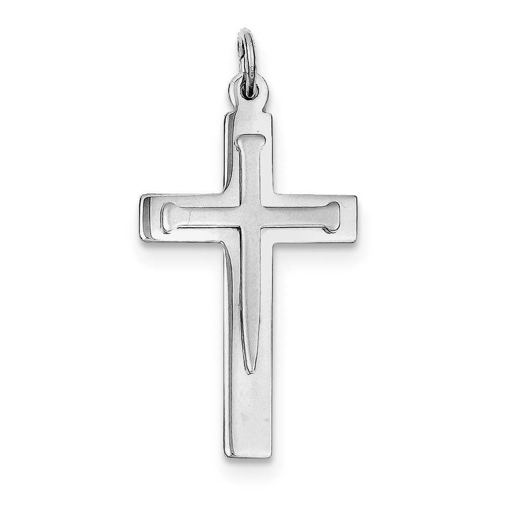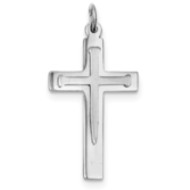 Sterling Silver Rhodium-plated Satin & Polished Cross Pendant