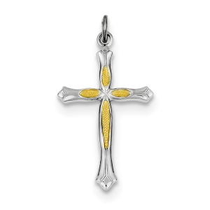 Sterling Silver Rhodium-plated and Vermeil Cross Pendant