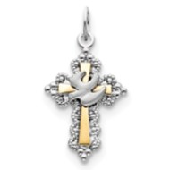 Sterling Silver Rhodium-plated & Vermeil Dove Cross Charm
