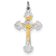 Sterling Silver Rhodium-plated & Vermeil INRI Crucifix Charm