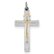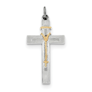 Sterling Silver Rhodium-plated & Vermeil Rosary Cross Pendant