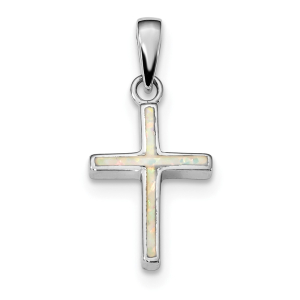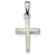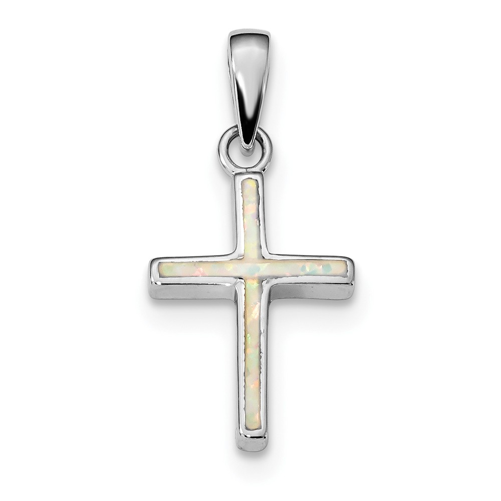 Sterling Silver Rhodium-plated White Created Opal Cross Pendant