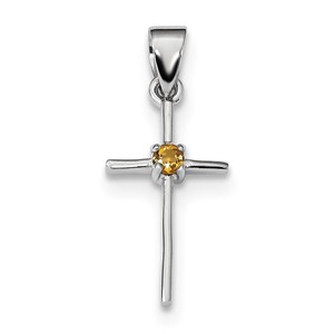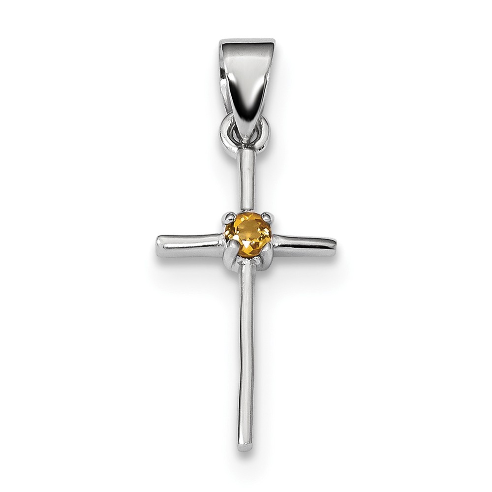 Sterling Silver Rhodium-platedCitrine Cross Pendant