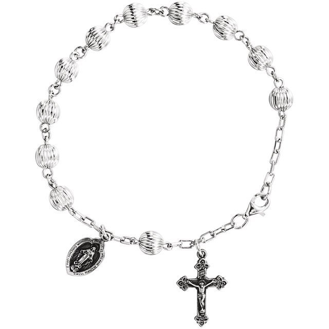 Sterling Silver Rosary Bead Bracelet w/ Miraculous Charm