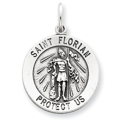 Sterling Silver Round Antiqued Saint Florian Religious Medal