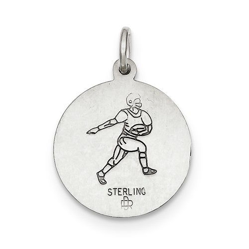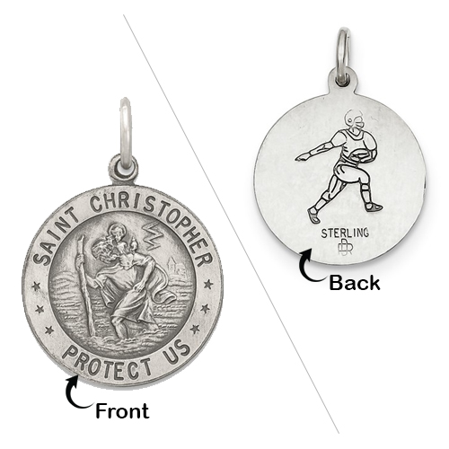 Sterling Silver Saint Christopher Double Sided Football Round Religious Medal