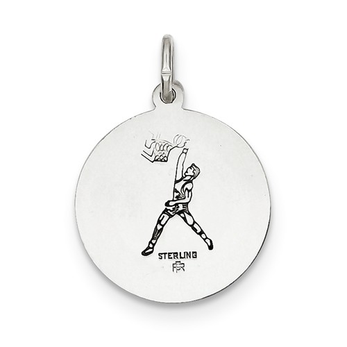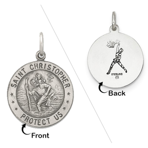Sterling Silver Saint Christopher Double Sided Basketball Round Religious Medal