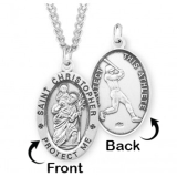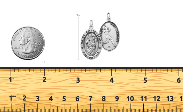 Sterling Silver Saint Christopher Double Sided Baseball Oval Religious Medal w/ Chain