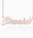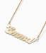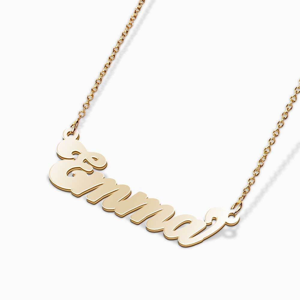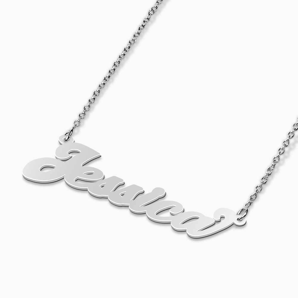 This horizontal high polished script nameplate is available in Solid .925 Sterling Silver, Solid 14k Yellow