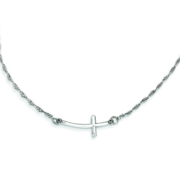 Sterling Silver Small Sideways Curved Cross Necklace